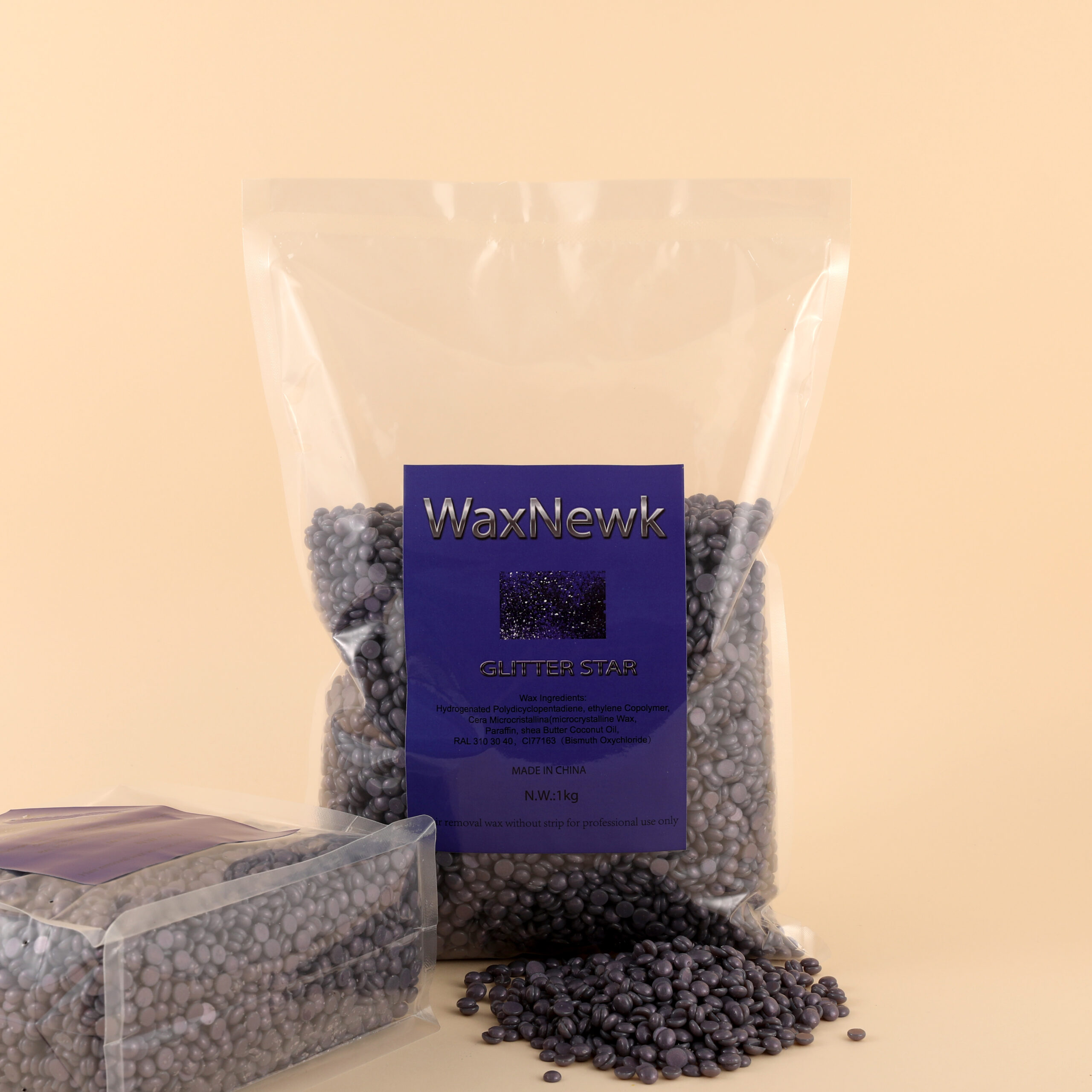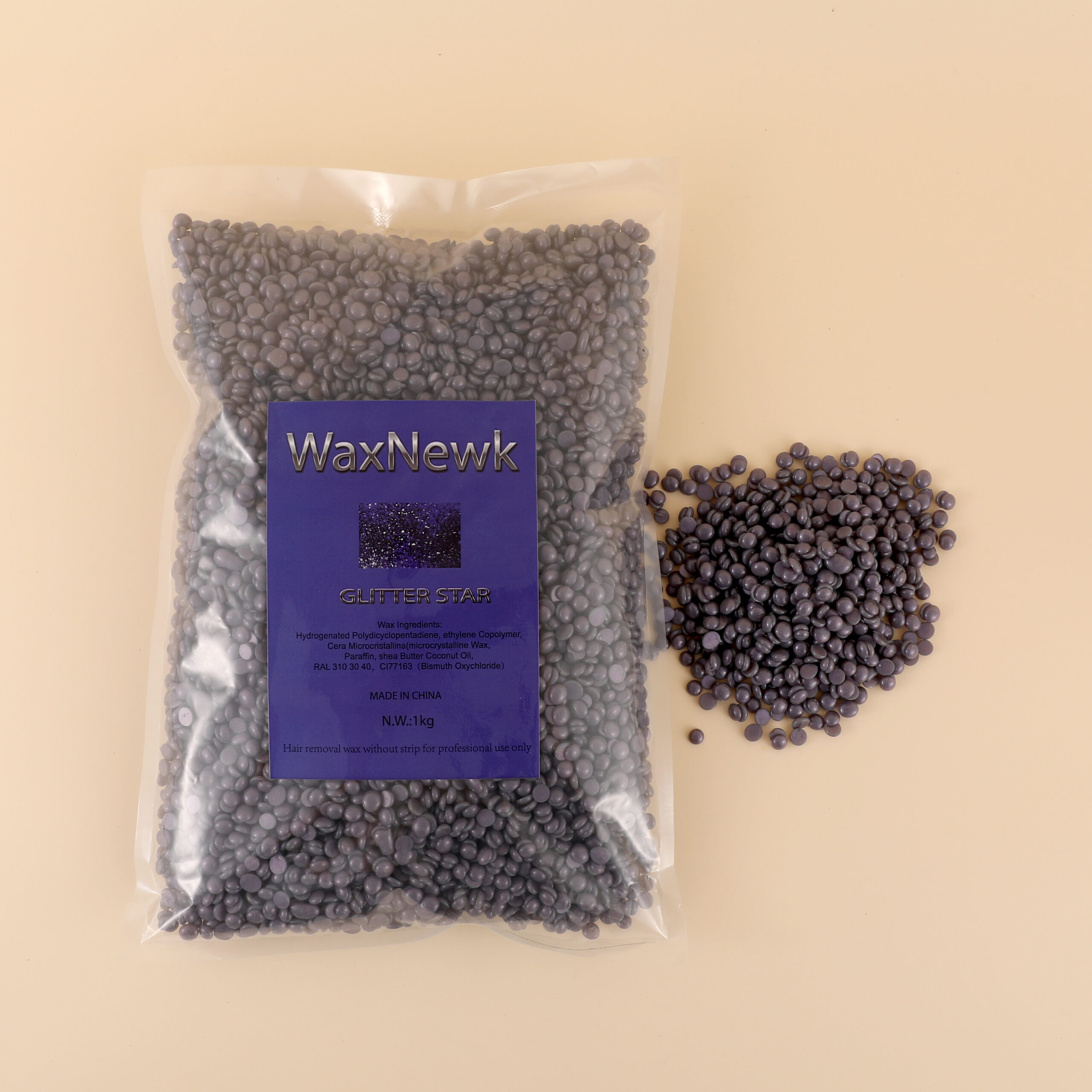 WaxNewK wax factory 1kg 2.2LB rosin free star glitter wax strong elasticity hypoallergenic premium Depilatory salon hard wax beads